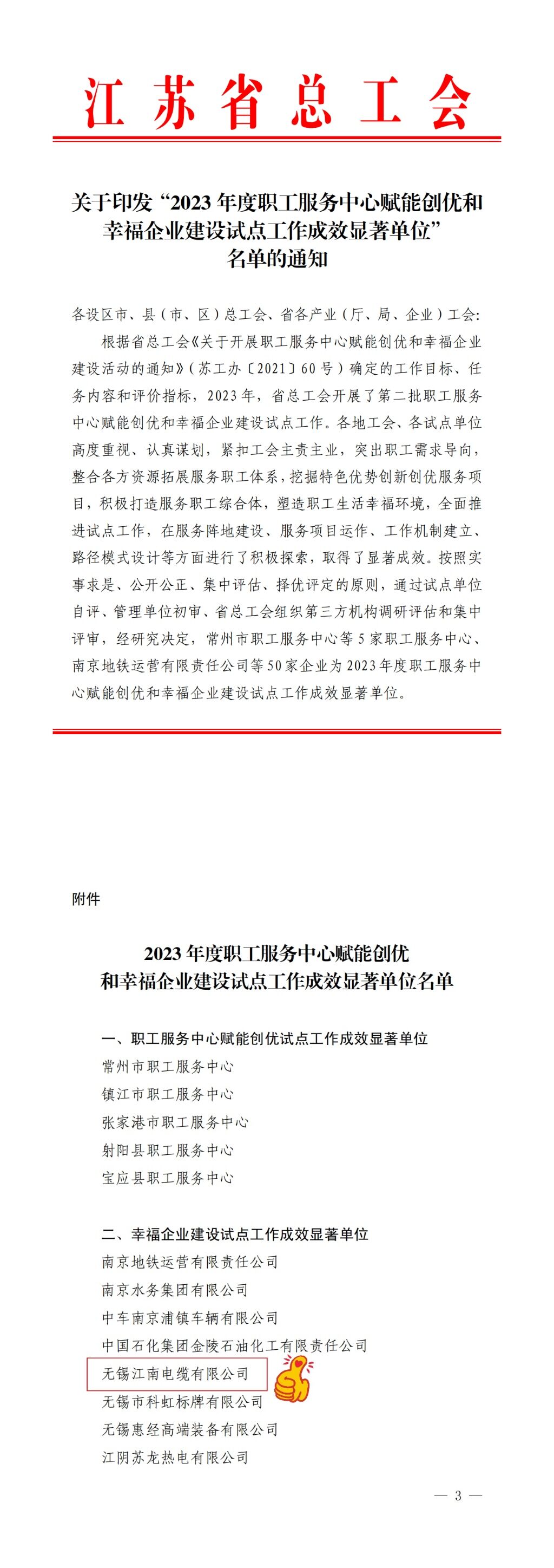 江南電纜獲評江蘇省幸福企業(yè)建設(shè)試點工作成效顯著單位。